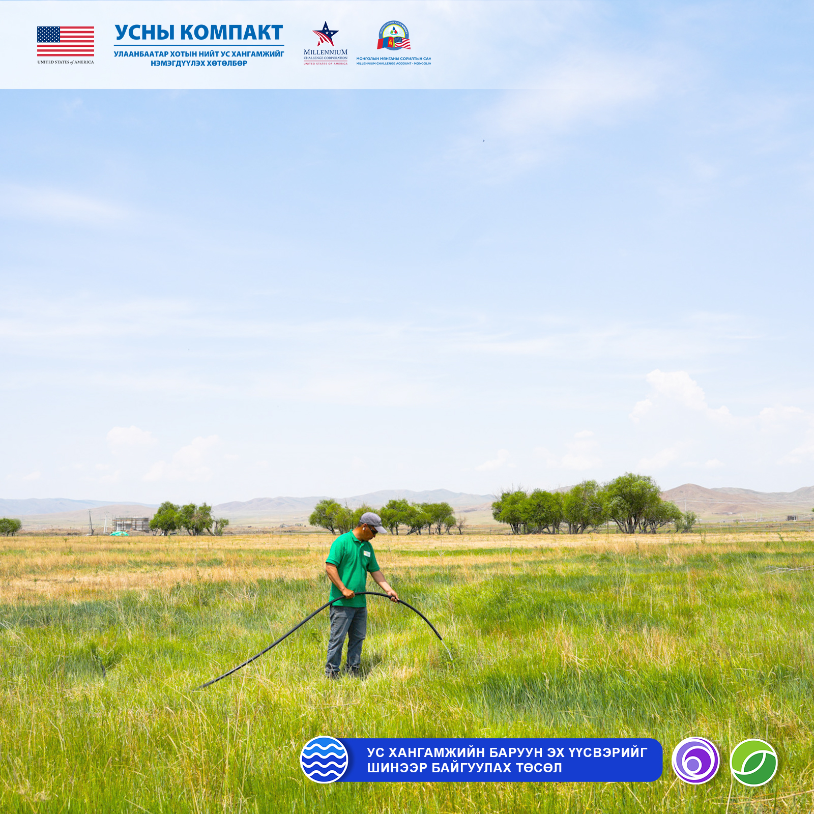 Нийт санхүүжилтийн 350 сая ам.долларыг АНУ-ын Засгийн газрын буцалтгүй тусламжаар, харин 111.7 сая ам.долларыг Монгол Улсын Засгийн газраас гаргасан байна. Энэ нь манай улсын усны салбарт хийгдэж буй түүхэн том хөрөнгө оруулалт юм.